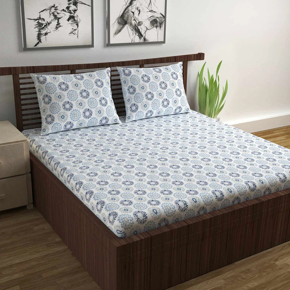 Cerulean Sky 100% Cotton Flat Bedsheet with Pillow Cover