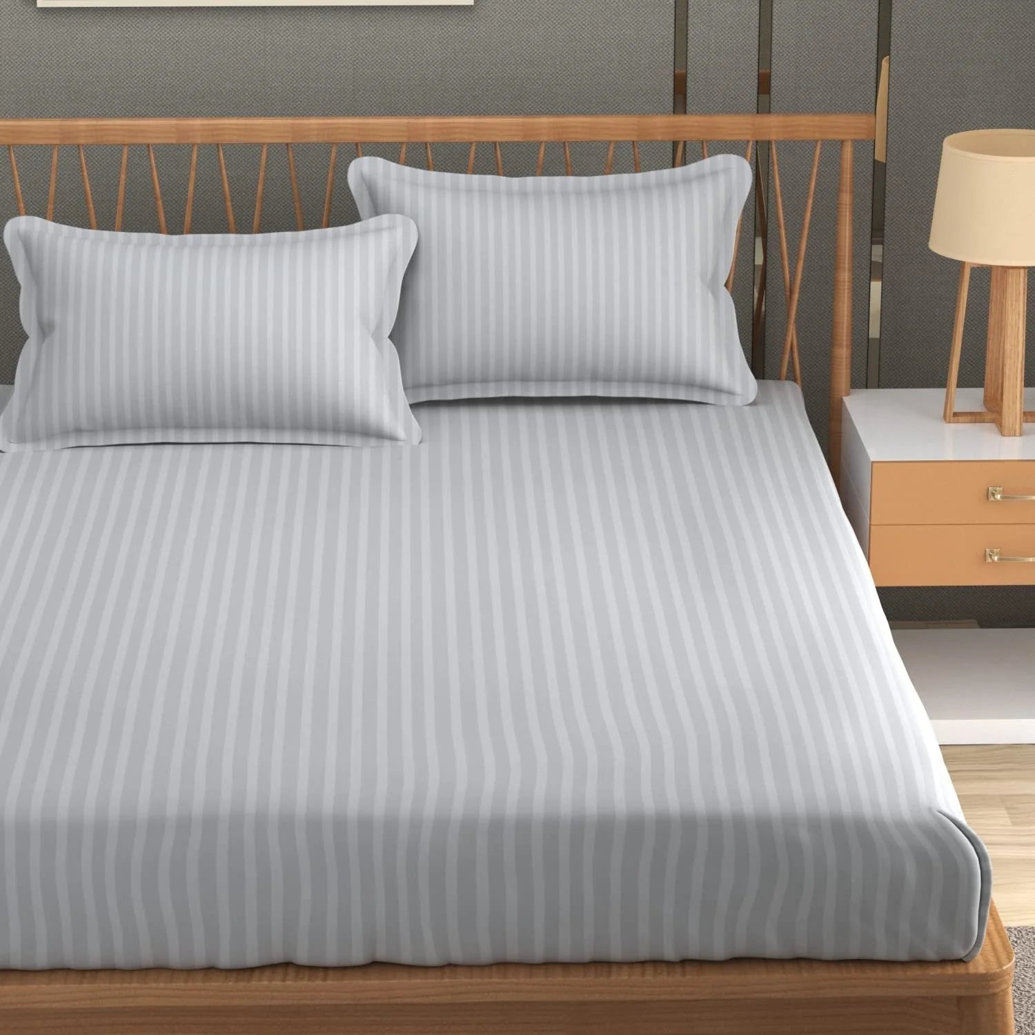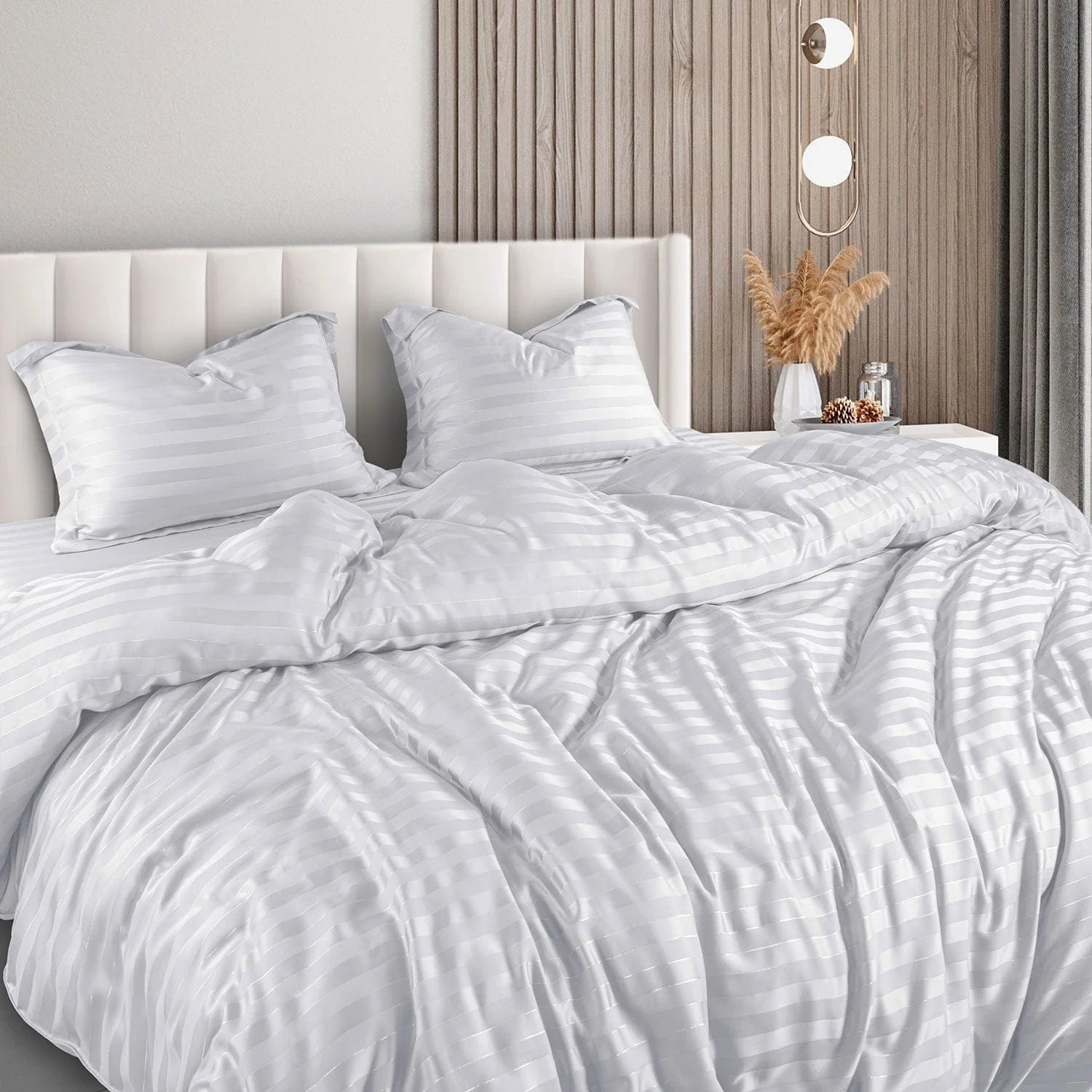 White Satin Stripe Flat Bedsheet with Pillow Cover
