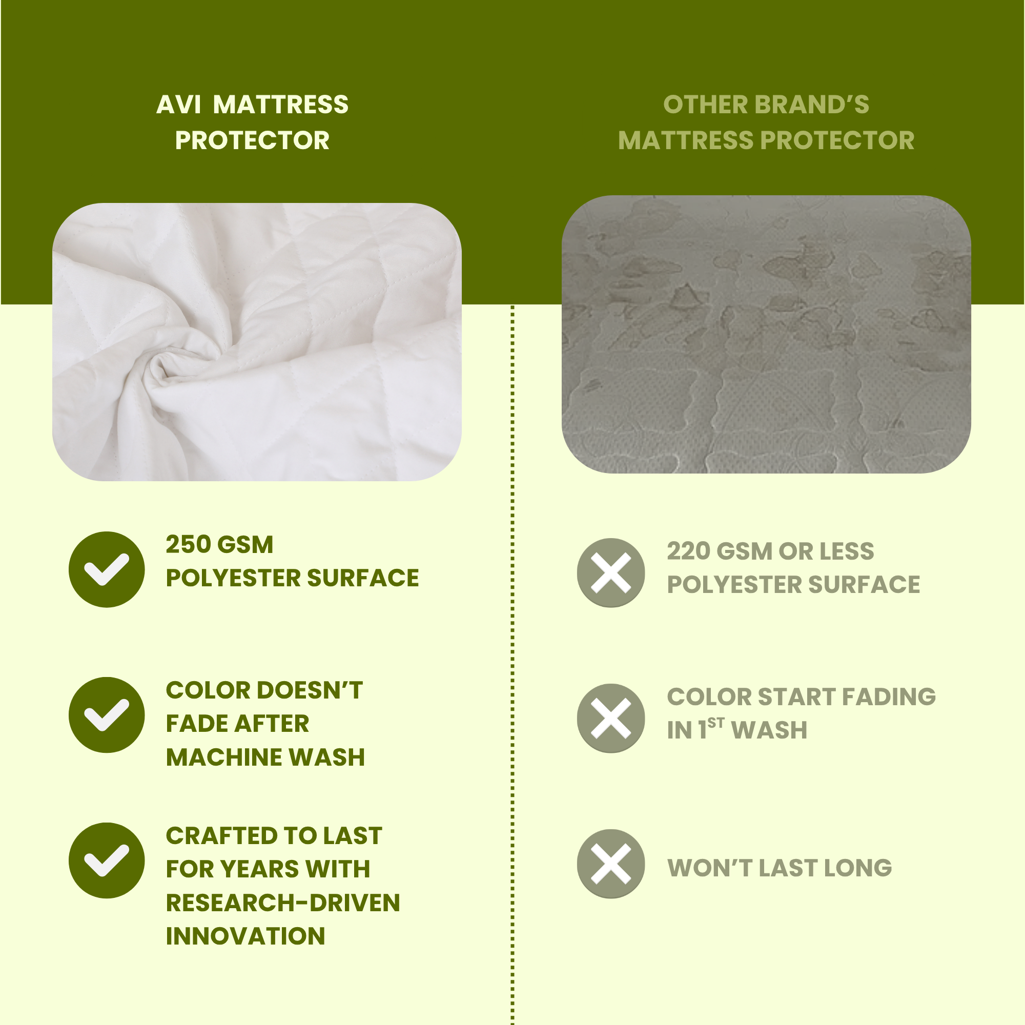Wrap your bed in a cozy shield with these comfy waterproof mattress protectors – the perfect blend of comfort and protection from Spills and Stains, ensuring sweet dreams and keeps mattress pristine and hygienic for years to come. Available in both fittings - Corner Elastic Straps & 360 Degree Corner Edge