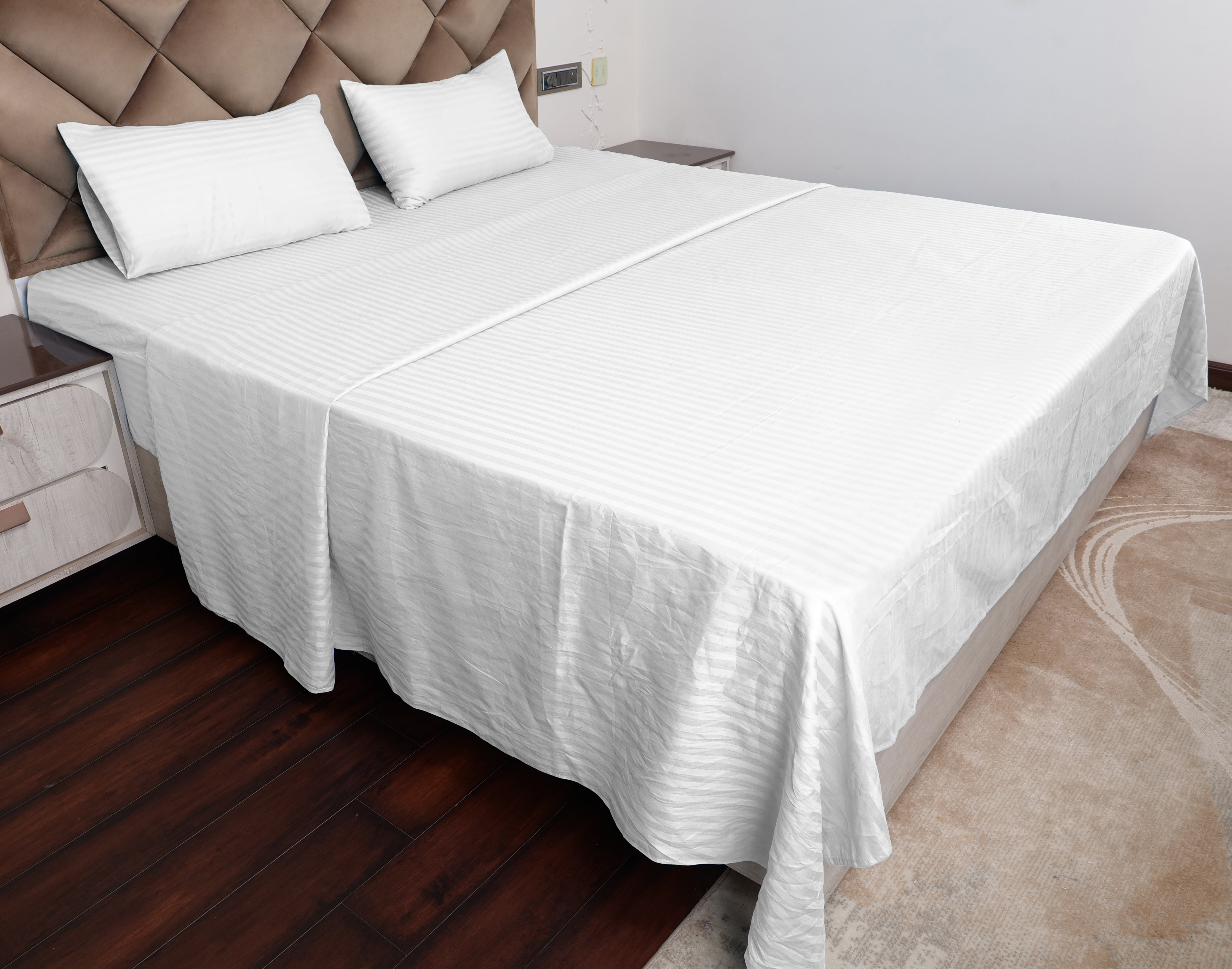 Elevate your bedding with our elegant satin stripe glacé pattern. The delicate shimmer of the stripes adds understated luxury while maintaining a classic, timeless appeal. A perfect blend of style and comfort, this bedsheet enhances any bedroom with effortless sophistication.