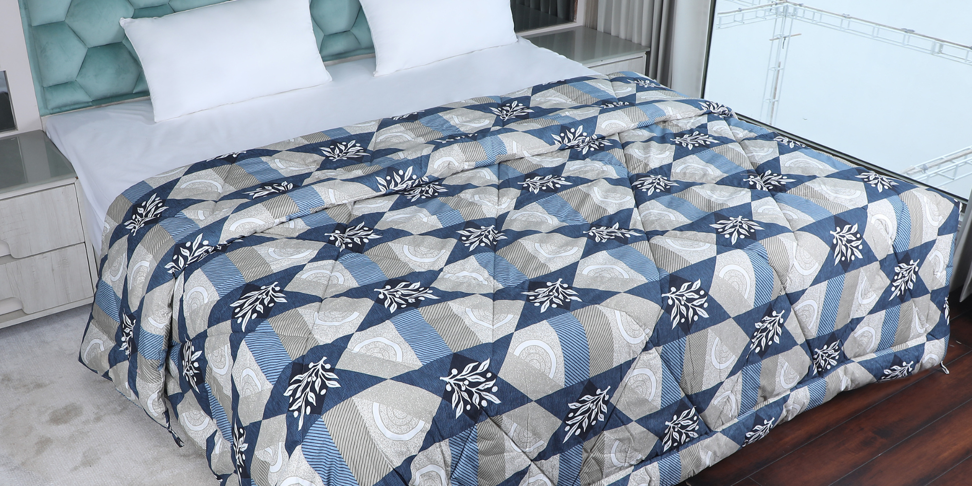 This Blue and Grey fade-resistant printed Comforter/Duvet/Dohar feels as soft and fluffy as it looks! Light-warm comfort and easy to care for thanks to the polyester microfiber. This can be washed frequently and provides all-season comfort with breathability, wrinkle-resistance, and long-lasting strength.