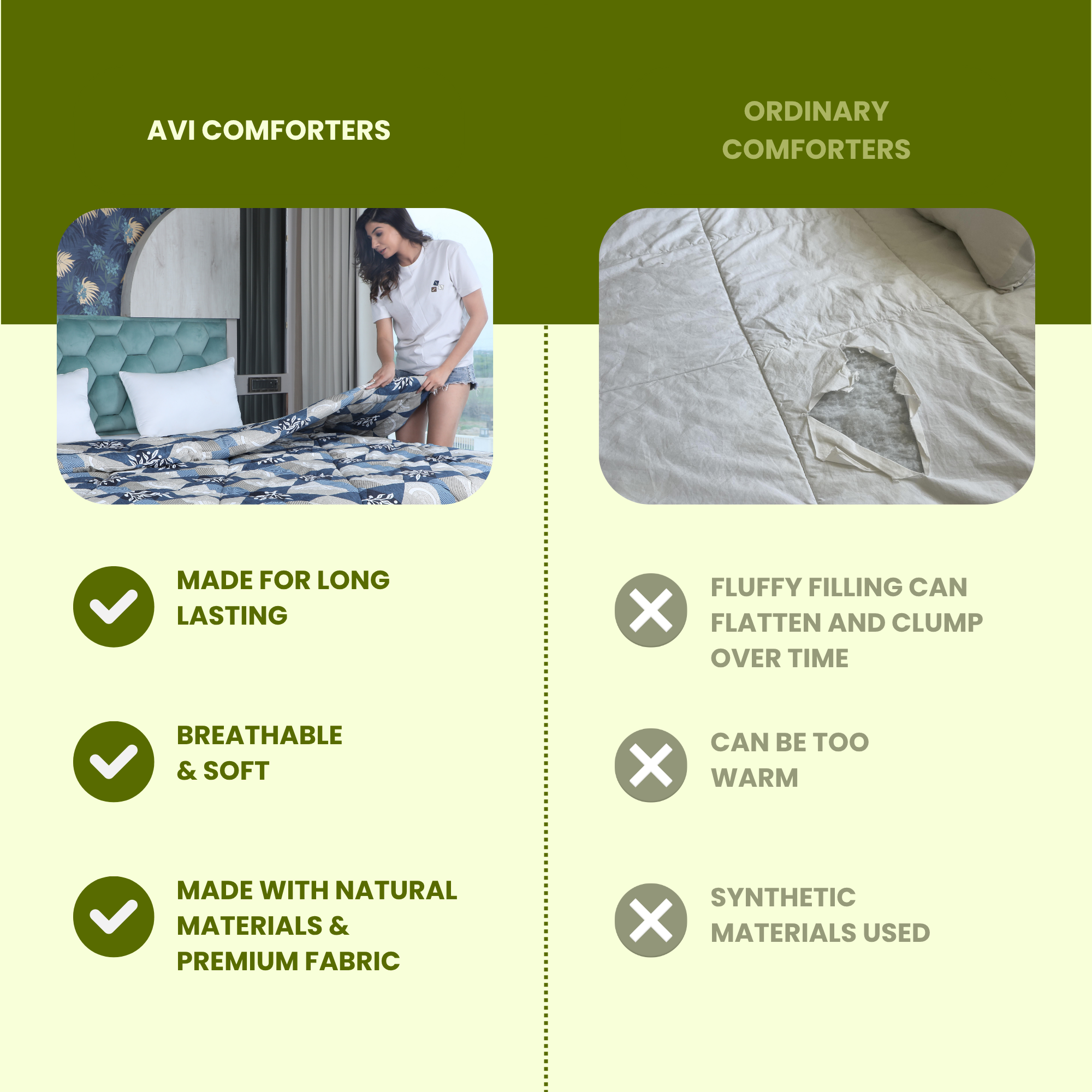 Yes! Our printed comforter provides balanced warmth that’s perfect for year-round use. It’s cozy enough for chilly nights but breathable enough for summer comfort too.
