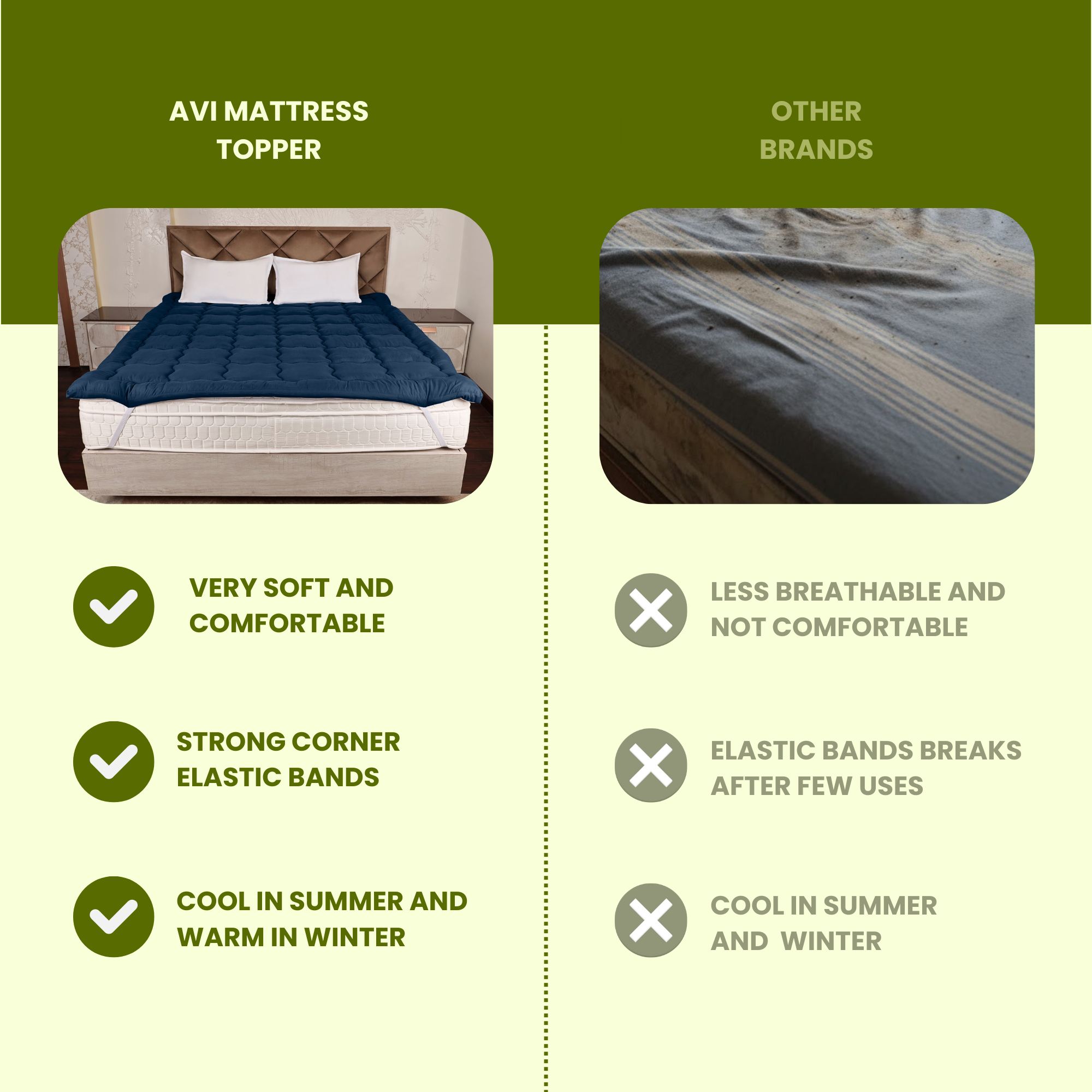Our Premium Hollow mattress topper makes your mattress top super soft, give new shape and absolutely new life to your old, sagged Mattress. Its is Hypo-Allergenic and anti-dust mite, with elastic band for perfect fit on mattress. It has a cover that can be removed and machine washed.
